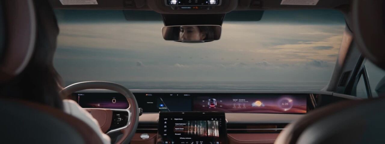 Customize your driving experience with unique cabin fragrances using the newly introduced available digital scent feature. With a tap of the screen, you can summon the rustic, natural feeling of a walk in the woods with Mystic Forest - an earthy blend of cedarwood and patchouli. Select Ozonic Azure for a cool, arctic-inspired fragrance that brings a sense of refined calm to your drive. Or imagine hanging fresh linens in the countryside with the crisp and floral smell of Violet Cashmere.