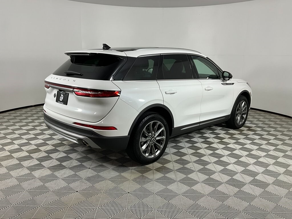 Certified. Pristine White Metallic Tri-Coat 2022 Lincoln Corsair Standard AWD 8-Speed Automatic 2.0L I4 10 Speakers, 19" Premium Painted Aluminum Wheels, 60/40 EasyFold Rear Seat w/Power Seatback Release, Air Conditioning, Ambient Lighting, Bumpers: body-color, Convenience Package, Elements Package, Equipment Group 101A, Fully automatic headlights, Heated front seats, Heated Rear Seat, Heated Steering Wheel, Heated/Ventilated Driver & Front Passenger Seats, Illuminated entry, Memory seat, Micro-Perforated Lincoln Soft Touch Seats, Outside temperature display, Panoramic Vista Roof w/Power Shade, Power Liftgate, Power passenger seat, Premium Leather-Trimmed Comfort Seats, Premium Package, Radio: Lincoln Premium Audio System w/MP3, Rain Sensing Wipers, Rear Parking Sensors, Remote keyless entry, SiriusXM Radio, SYNC 3 Communications & Entertainment System, Universal Garage Door Opener, Ventura Leather-Wrapped Steering Wheel, Voice-Activated Touchscreen Navigation System, Windshield Wiper De-Icer.