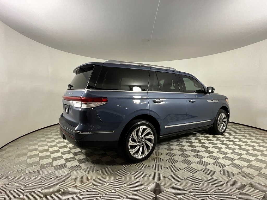 Certified. Ocean Drive Blue Metallic Tinted Clearcoat 2023 Lincoln Navigator Reserve 4WD 10-Speed Automatic V6 4WD, Sandstone w/Prem Lthr Auto Htd/Ventiltd Perfect Position Seats, 14 Speakers, 3rd row seats: split-bench, Air Conditioning, Auto Start-Stop Technology, Bumpers: body-color, Equipment Group 201A Reserve I, Exterior Parking Camera Rear, Front Bucket Seats, Fully automatic headlights, Genuine wood dashboard insert, Genuine wood door panel insert, Heads-Up Display, Heated front seats, Heated rear seats, Heated steering wheel, Illuminated 1st & 2nd Row Seat Belts, Illuminated entry, Leather steering wheel, Lincoln Lit Star in Grille, Luxury Package, Memory seat, Navigation system: Connected Navigation (3-year trial), Outside temperature display, Perfect Position Seats (30-Way) w/Active Motion, Power Liftgate, Power moonroof: Panoramic Vista Roof, Power passenger seat, Prem Lthr Auto Htd/Ventiltd Perfect Position Seats, Radio: Revel Ultima 3D Audio System w/28 Speakers, Rain sensing wipers, Rear air conditioning, Reclining 3rd row seat, Remote keyless entry, SYNC 4 Communications & Entertainment System, Ventilated front seats, Ventilated rear seats, Voice-Activated Touchscreen Navigation System, Wheels: 22" Bright Machined Aluminum.