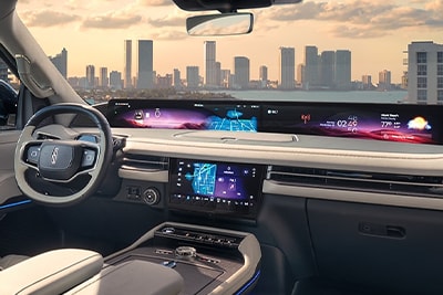 | The Navigator debuts the Lincoln Digital Experience in 2025. A wide 48-inch panoramic display stretches across the dashboard, integrating Google built-in apps, maps, and entertainment. Standard safety tech includes Lincoln BlueCruise hands-free driving, adaptive cruise control, lane centering, and turn signal view. | |
