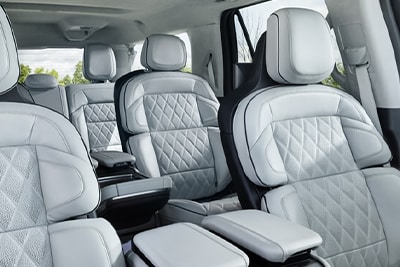 | Inside, the 2025 Navigator offers a calm and luxurious atmosphere. Premium leather, wood trims, and modern design give the cabin a refined look. Available 30-way Perfect Position front seats provide heating, cooling, and massage, while the power-reclining third row ensures comfort for every passenger. The extended "L" model adds even more space for passengers and cargo. | |