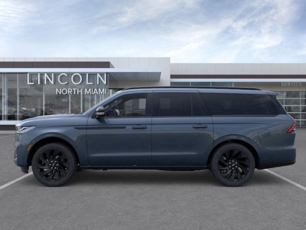 Flight Blue Metallic Clearcoat 2025 Lincoln Navigator L Reserve 4WD 10-Speed Automatic 3.5L V6 4WD, Black Onyx Leather.